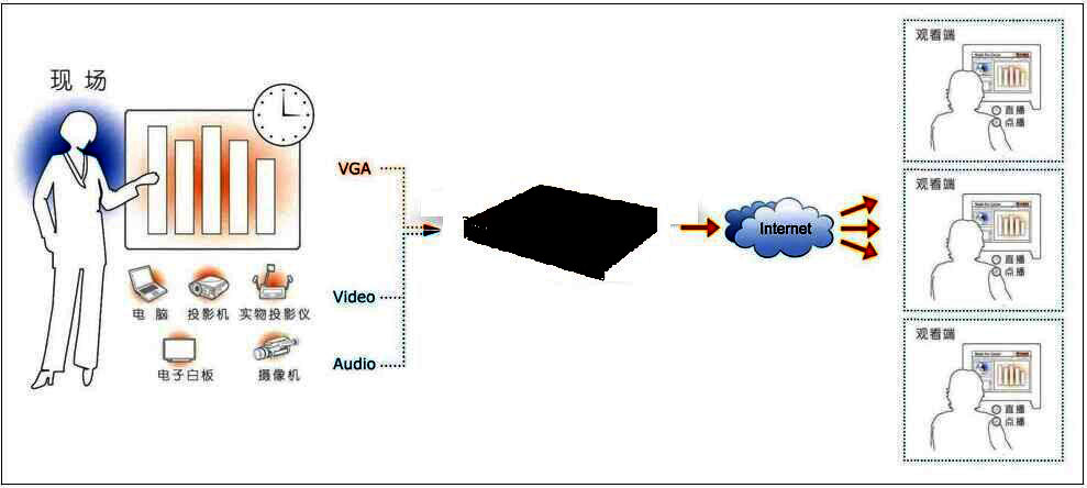 2、 可以把教室的實(shí)況通過(guò)網(wǎng)絡(luò)直播到校內(nèi)各個(gè)多媒體教室,異地用戶也可以用電腦通過(guò)網(wǎng)絡(luò)進(jìn)行同步收看。