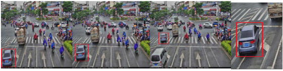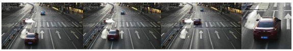 系統根據配置好的圖片合成和信息疊加模式,將依次抓拍的三張圖片排列組合,并與車輛局部放大的特寫圖片合成為一張完整的圖片,輸出完整的違法并線全過程。