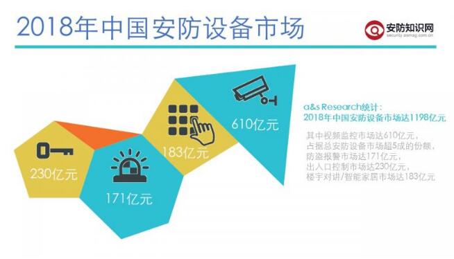 但與2017年相比,安防設備市場呈現出12%左右的增長率,隨著中國政府雪亮工程的投入、安防存量市場的設備升級等因素的驅動,預估2019年安防設備市場將達1300億元。